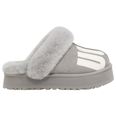 Supplier-sku #: 1129230-CBBA retro sole for that maximalist look! Crafted for all-day cushioning, the UGG Disquette Chopd features the familiar slip-on silhouette with signature sheepskin suede upper and retro-style platform soles. An easy pick for that effortless style, these UGGs stand out with a print design that boldly cuts the graphic logo. These outdoor wear slippers make a playful statement that looks as good with joggers as it does with a dress.